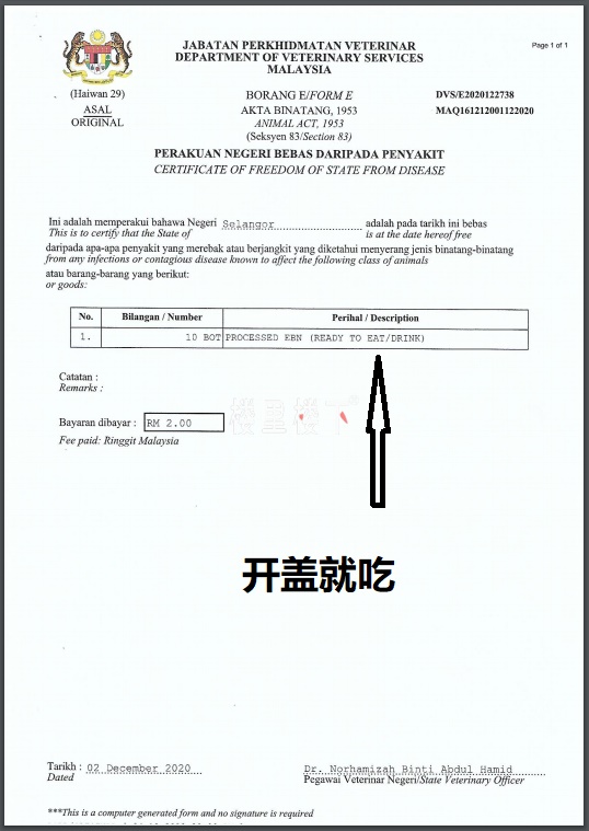 各種農業部門、獸醫局、以及燕窩檢驗檢疫出口文件(如上圖)都是力爭速度辦理下來然后按規定做出口,可以說我們的服務都是一直沒有間斷過,各位如果需要從馬來西亞直接進口馬來西亞做好的瓶裝燕窩開蓋即食的那種都是熱烈歡迎,尤其是比較近的幾個國家和地區如港澳臺日韓、澳洲新西蘭等都是大大的歡迎呀,歡迎砸單咯咯咯,thanks。